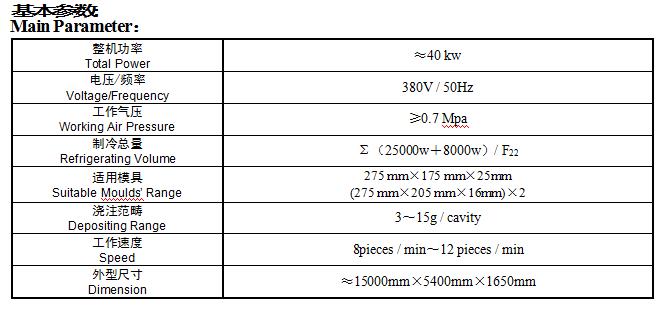●本机由印模输送、烘模装置、定量浇注、振动装置、制壳成型、冷却隧道、自动脱模等系统合成一条完善的巧克力全自动生产线;并具有花色夹心巧克力、立体复合巧克力、碎果仁巧克力、纯巧克力等生产的诸多功能。