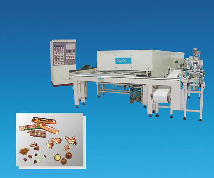 ●XJ-275G型多功能巧克力自动生产线系列机型,是企业现代化、规模化、集约化生产巧克力的理想首选设备之一,用户可根据不同市场层次的需要,自由选择配置最佳机型。