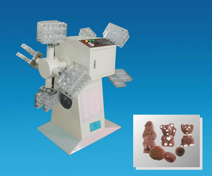 ●ZKⅡ型中空巧克力成型机配置专用PC中空巧克力模具,是依据巧克力工艺特性及在公转与自转状态下,物料呈离心力流向的原理而设计,在设备旋转工作状态下,完成中空巧克力制品成型工序,其造型新颖、形态可爱的立体空心巧克力成品,具有颇高的艺术欣赏价值及商品的经济附加值。