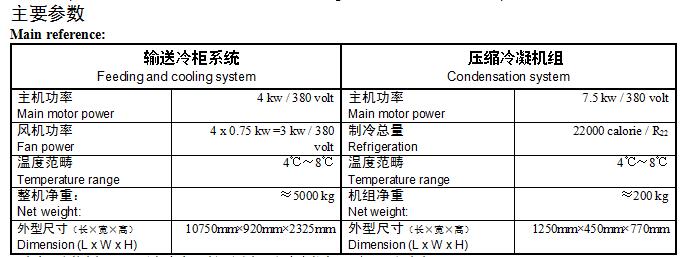 ●LG650型巧克力冷柜机组,具有同时满足275E系列巧克力浇注机2台的生产能力,班产最高标准≥4000公斤,特殊设计的预冷区、冷却区、回升平衡区三段温区,适合于调温型特性巧克力生产工艺条件,具有技术含量高,整机质量稳定、电能耗节省、可操作性强、维修保养便捷等优点,配置其他功能的单机组合,具备完整的巧克力成型生产线的专用设备的功能。